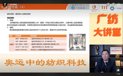 9月25日上午11時,廣紡檢測在廣東時裝周視頻號開啟線上直播,以“點燃奧運激情的多巴胺——高科技運動面料的功能性設(shè)計與檢測”為主題開展廣紡知識大講堂,以奧運中的紡織科技獨特視角切入,介紹功能性紡織品及設(shè)計,如接觸間涼感性能、保暖性能、遠紅外性能、免燙性能等,解讀功能性紡織品檢測的國家標準、行業(yè)標準的要點。直播內(nèi)容干貨滿滿,助力品牌商把控功能性紡織面料及服飾的質(zhì)量。此次直播共有1800+人次觀看,點贊數(shù)超過15000+,觀眾沉浸其中,全程參與度高。