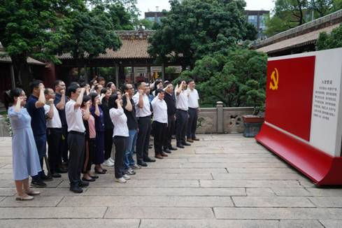 隨后,簡(jiǎn)瑋儀帶領(lǐng)大家面對(duì)鮮紅的黨旗,高舉右拳,重溫入黨誓詞,回顧入黨宣誓時(shí)的莊嚴(yán)承諾和奮斗追求。